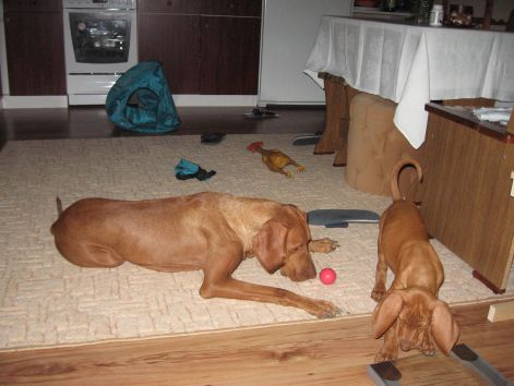Hát így játszottak egymással miután ketten maradtak. Vanda sokkal nyugodtabb és kedvesebb lett, hogy már nem kellett ezer felé figyelnie, de a vizslaféltékenység az megmaradt, mindig az a játék kell mindkettőnek, amelyik éppen a másiknál van, mint a gyerekek, úgy viselkednek.