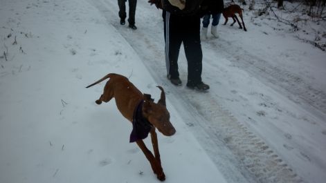 A karácsonyi családtalálkozó mottója lehetne a következő Micimackós nóta: " Hull a hó és hózik zik zik, a vizslacsalád fázik zik zik..." A túra egész ideje alatt csudaszép, mesébe illő hóesés kísérte a csapatot. Eleinte nagyon örültünk az égi áldásnak (mert legalább nem az eső verte a fejünket) de a túra végére egy kicsit átáztunk, átfáztunk. Ennek ellenére nagyszerű téli kirándulás volt ez illusztris résztvevőkkel.