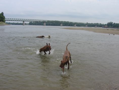 Érdemes egy pillantást vetni az eltorzult vizslafejekre, nem tudom ki kicsoda, de mindketten jó arcok :) háttérben a pacsafelhőben Rozi úszik (azt hiszem)