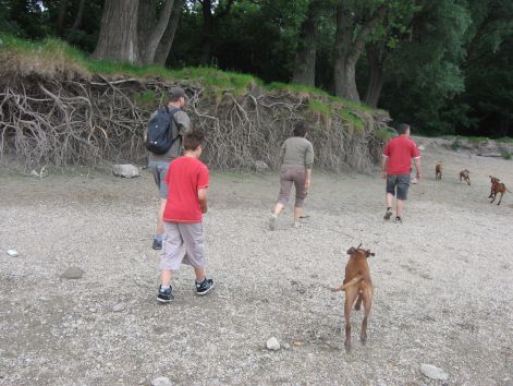 Program: séta a kutyákkal a szigeten, majd úszás (Rozi úszótechnikáját képeken nehéz lesz visszaadni, de azért lesznek árulkodó pillanatok